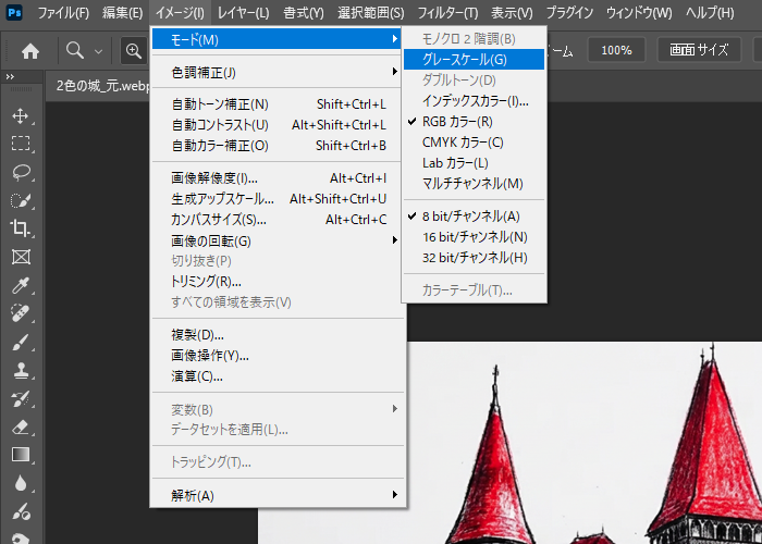 何も考えずにRGB画像をphotoshop上でイメージ→モード→グレースケールへと変換すると
